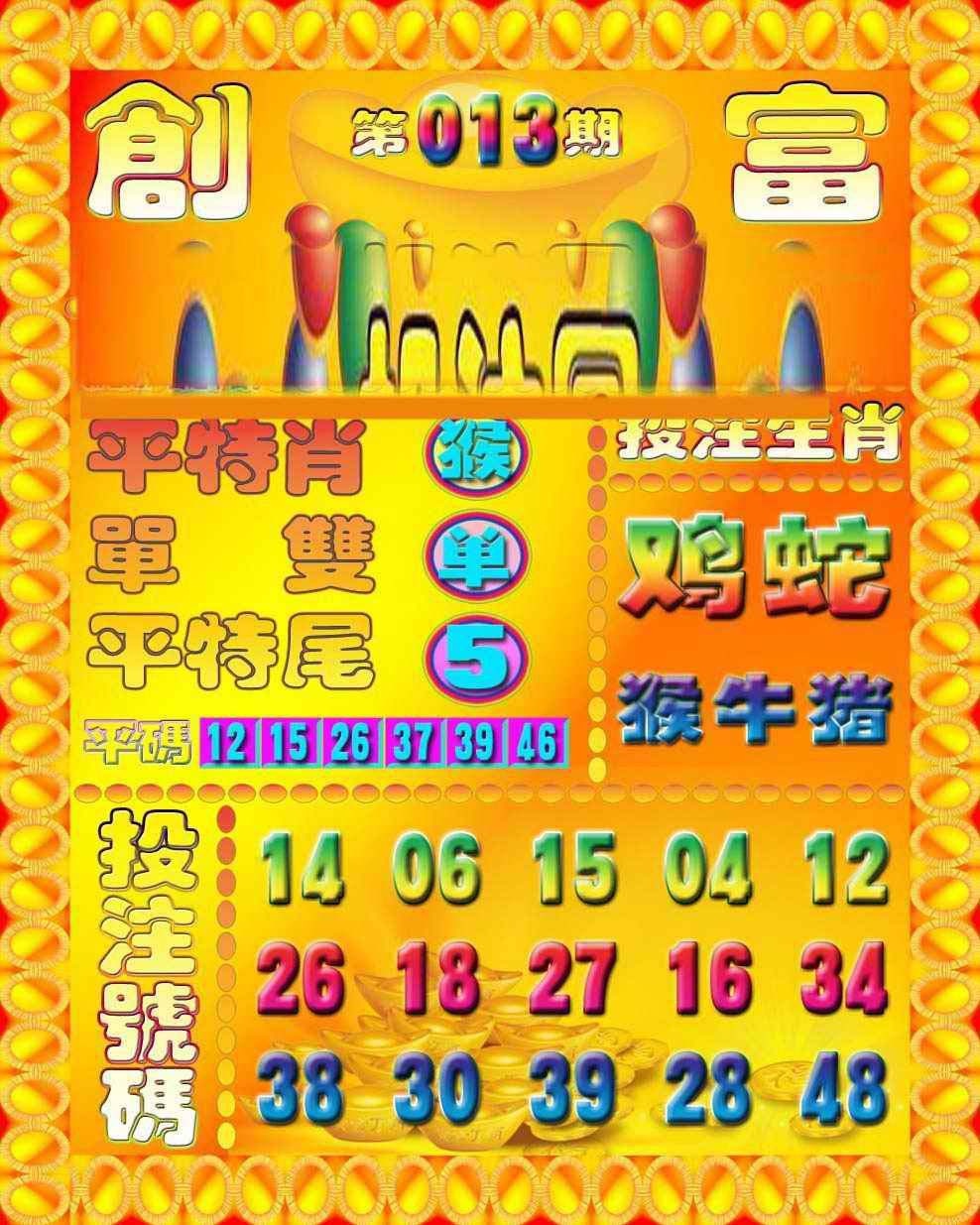 013期:香港六合彩『创富投注图』