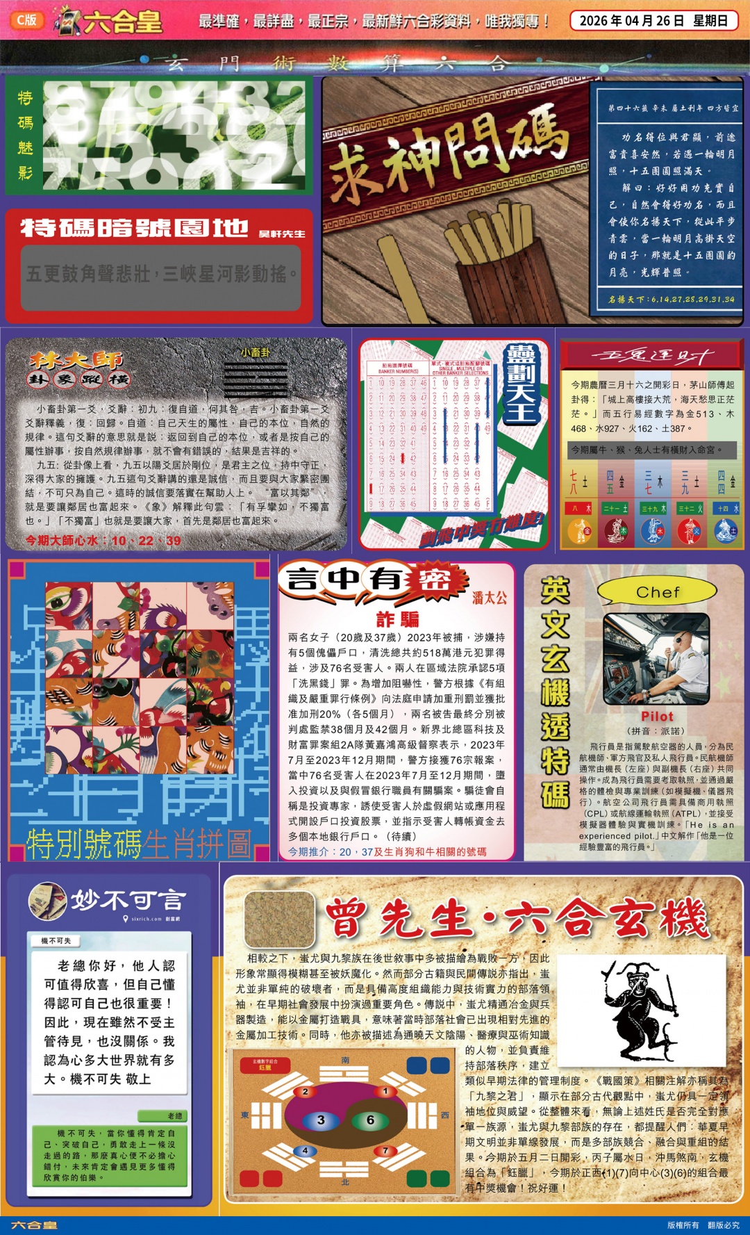 046期: 香港六合彩 『平特乾坤卦』已更新