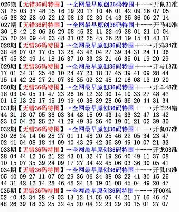 035期:香港六合彩『 3 6码特围』