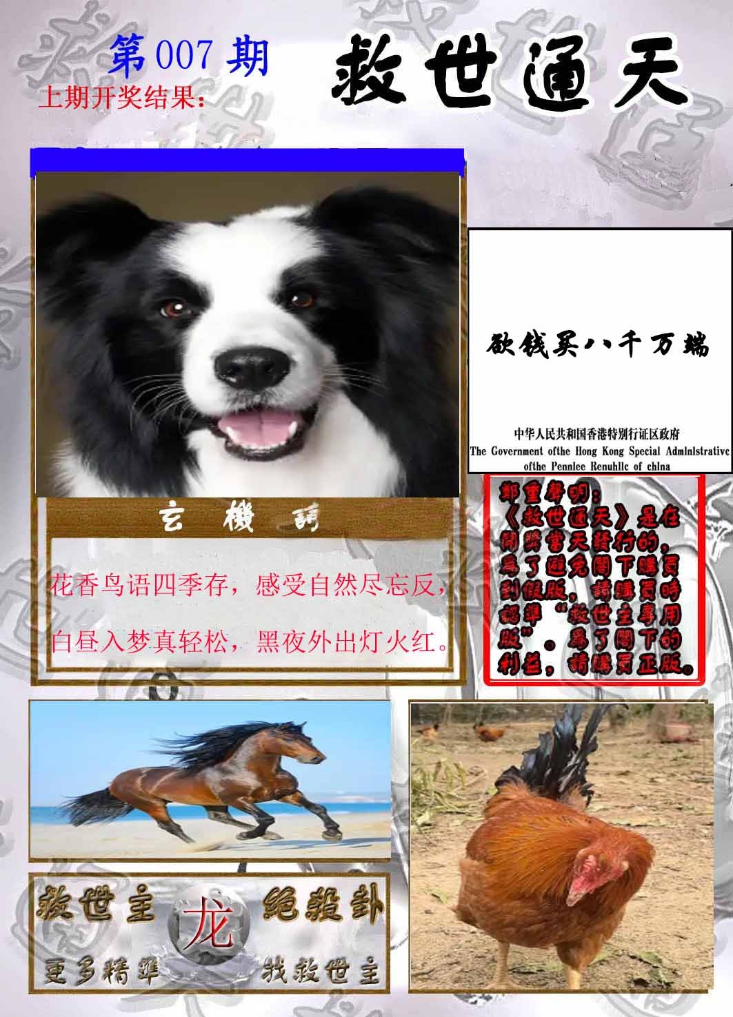 007期:香港六合彩『救世通天报』
